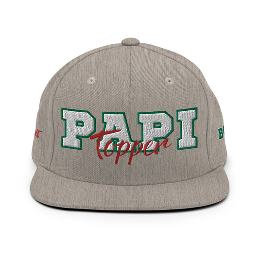 Papi Topper High Profile Snapback in Heather with Red, White, and Green Detail